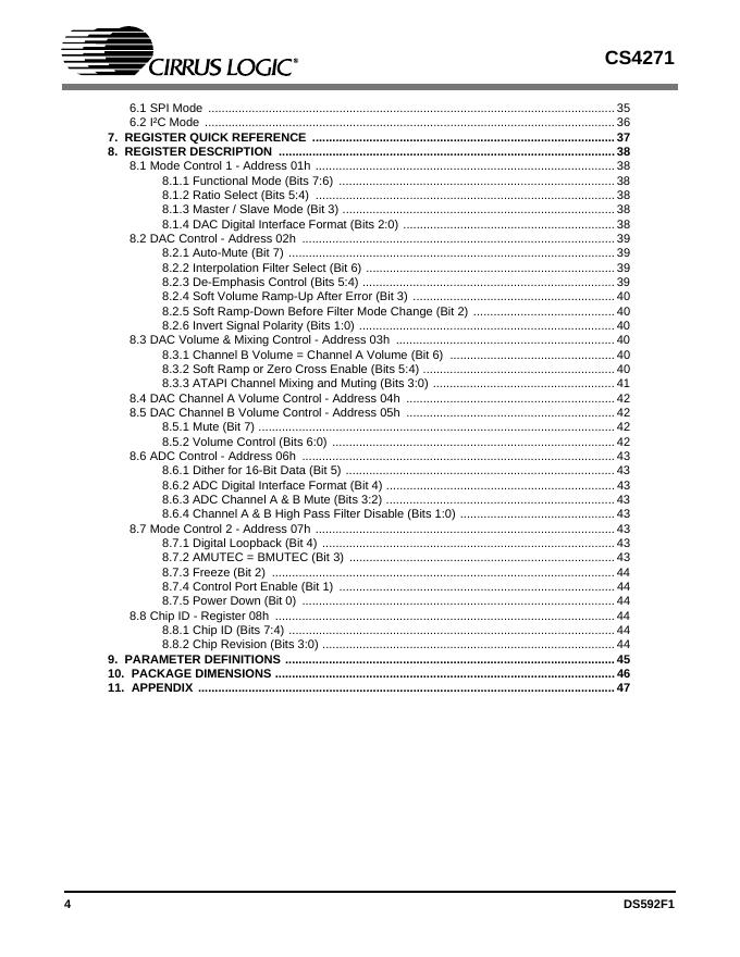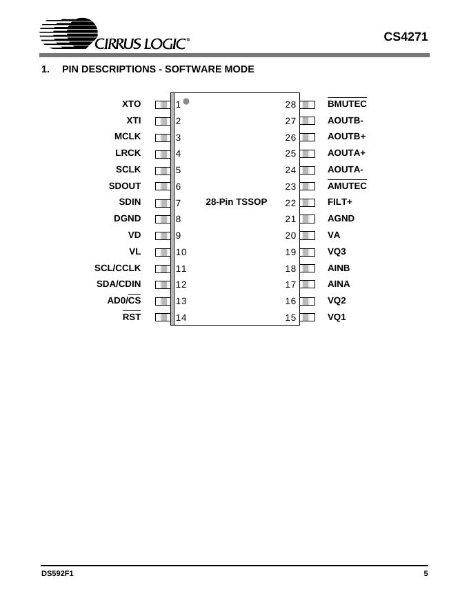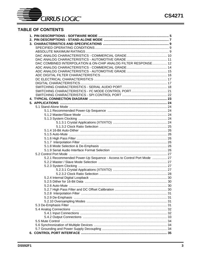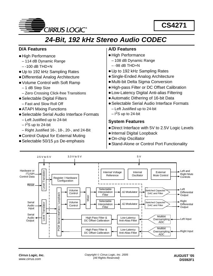 CIRRUS LOGIC CS4271 24-Bit, 192 kHz Stereo Audio CODEC 数据手册.pdf