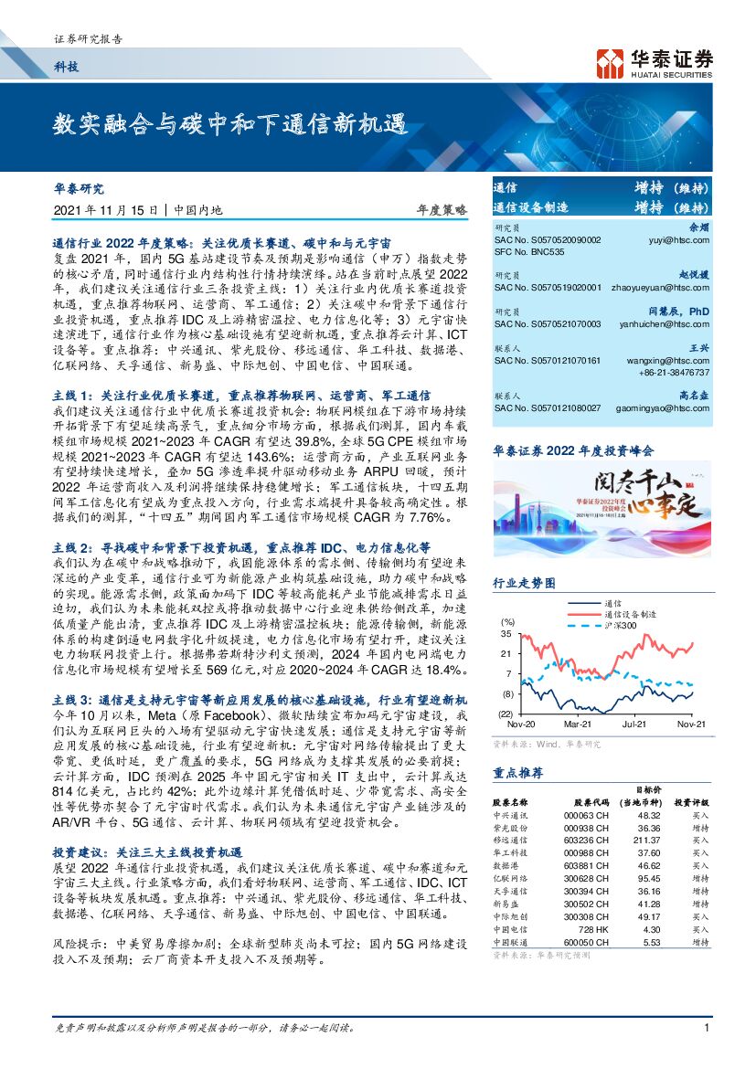 华泰证券:通信行业年度策略:数实融合与碳中和下通信新机遇.pdf