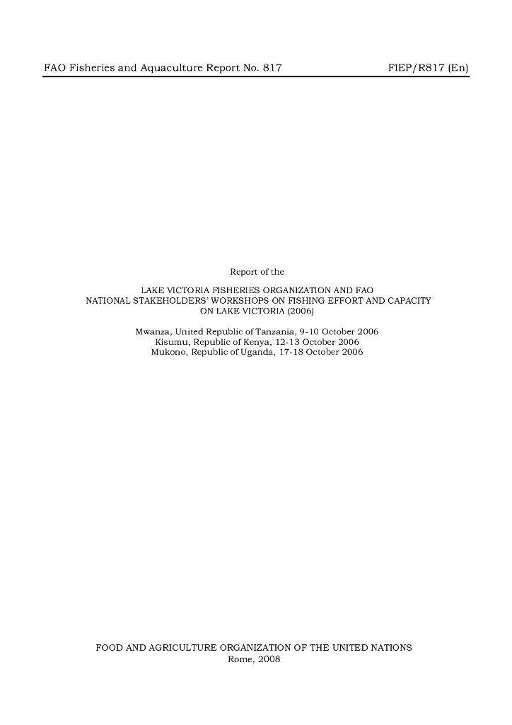 FAO联合国粮农组织:维多利亚湖渔业组织和粮农组织关于维多利亚湖捕捞努力和捕捞能力的国家利益攸关方研讨会报告(2006).pdf