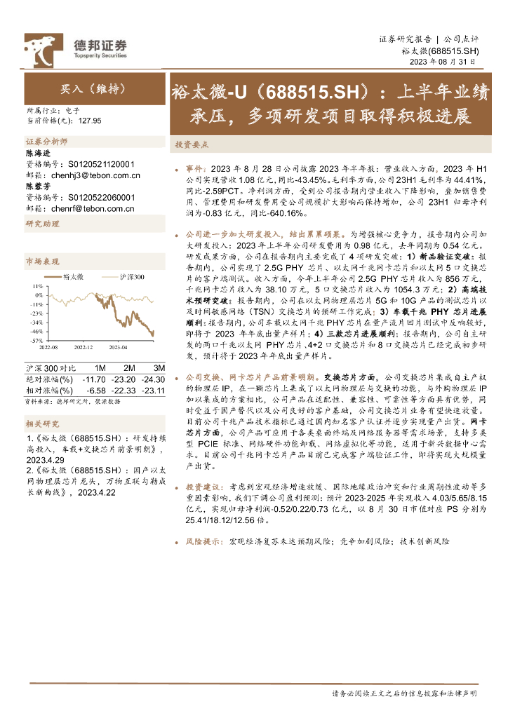 德邦证券:裕太微(688515)-上半年业绩承压,多项研发项目取得积极进展.pdf