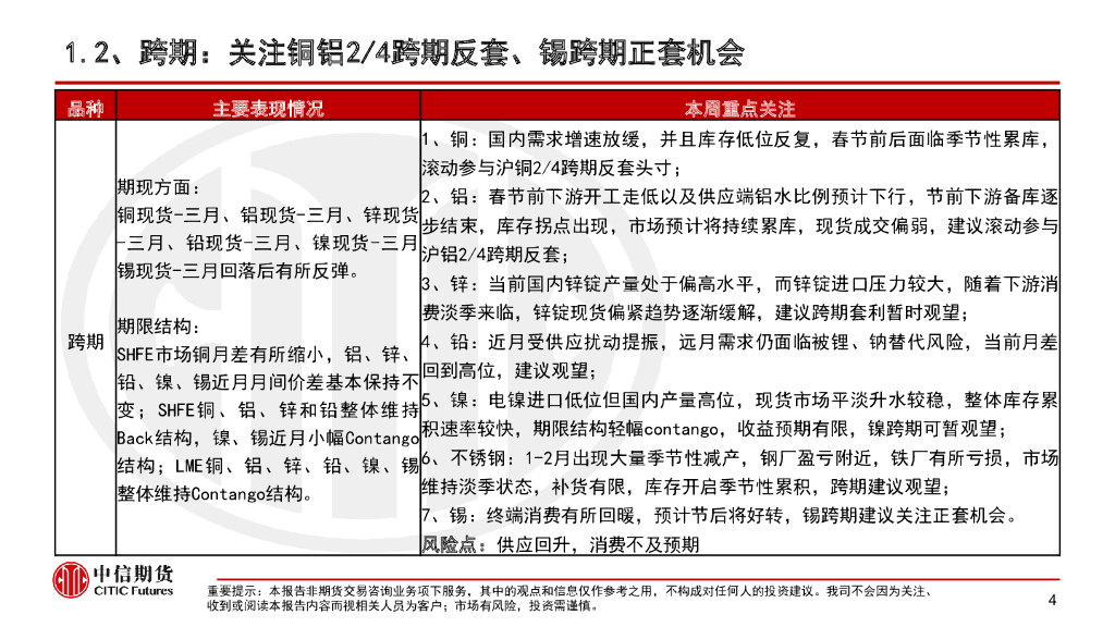 中信期货:春节前累库预期下,关注铜铝跨期反套机会——有色金属套利周报20240123.pdf