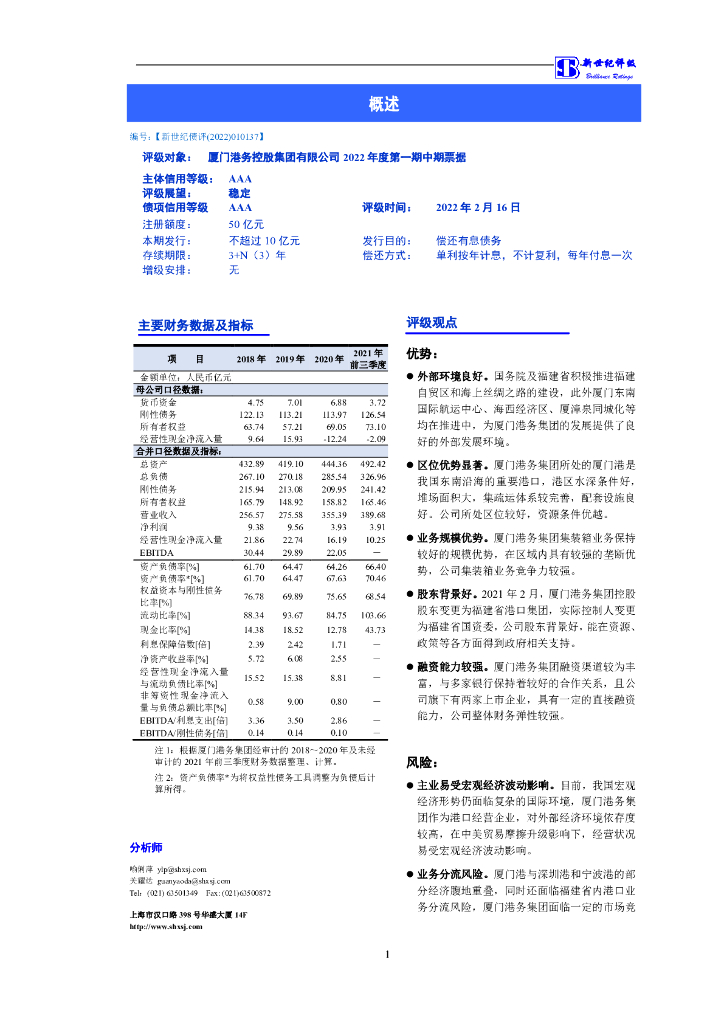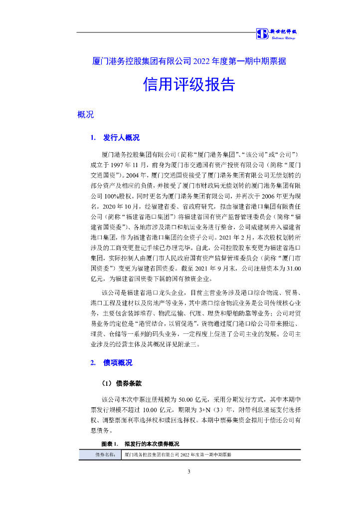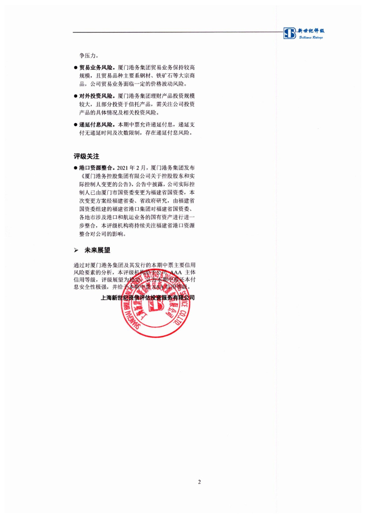 新世纪:厦门港务控股集团有限公司2022年度第一期中期票据信用评级报告.pdf