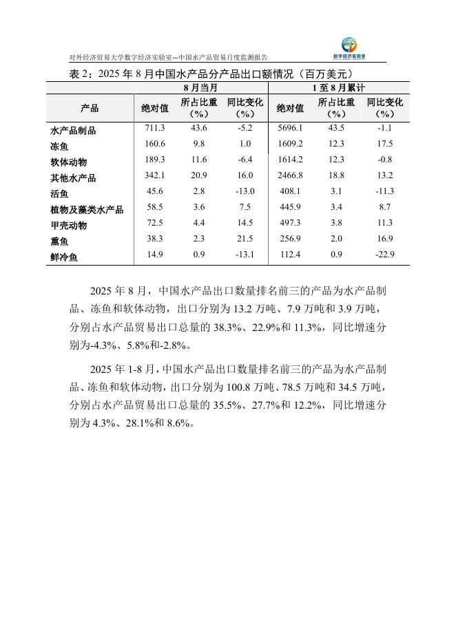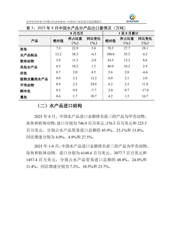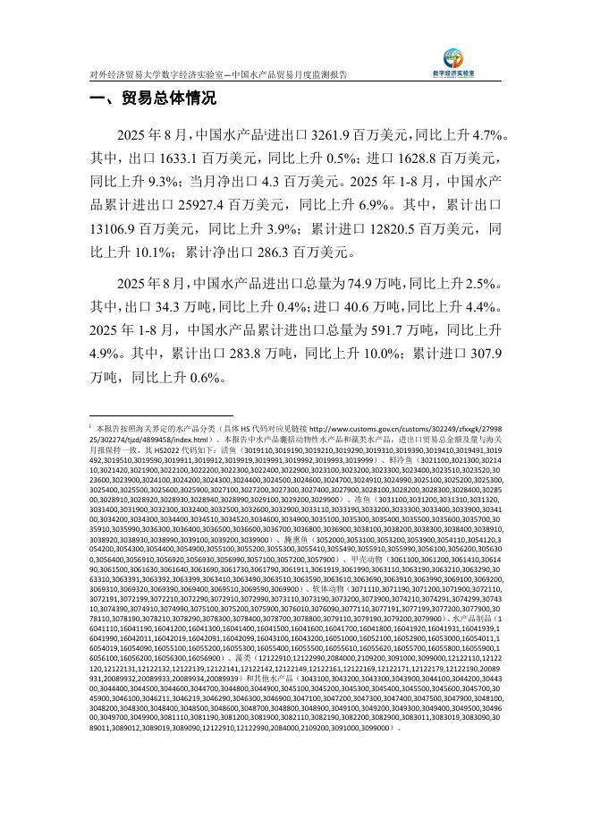 对外经济贸易大学:中国水产品贸易月度监测报告(2025年1-8月).pdf