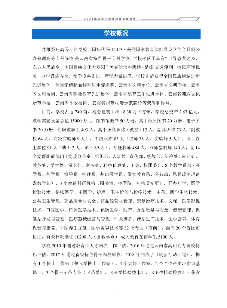 楚雄医药高等专科学校2021届毕业生就业质量年度报告.pdf