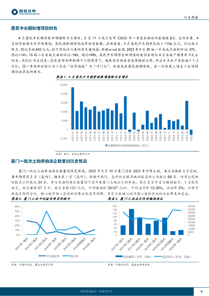 国金证券:房地产行业研究:居民新增信贷转负,厦门参拍房企创纪录.pdf