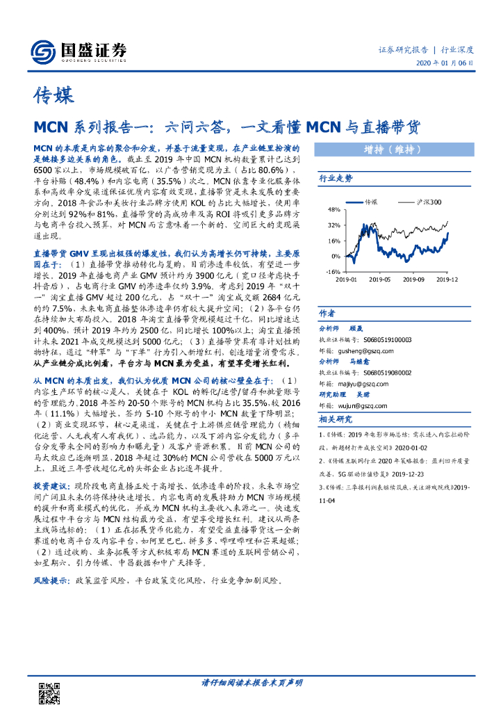 国盛证券:传媒行业深度:MCN系列报告一:六问六答,一文看懂MCN与直播带货.pdf
