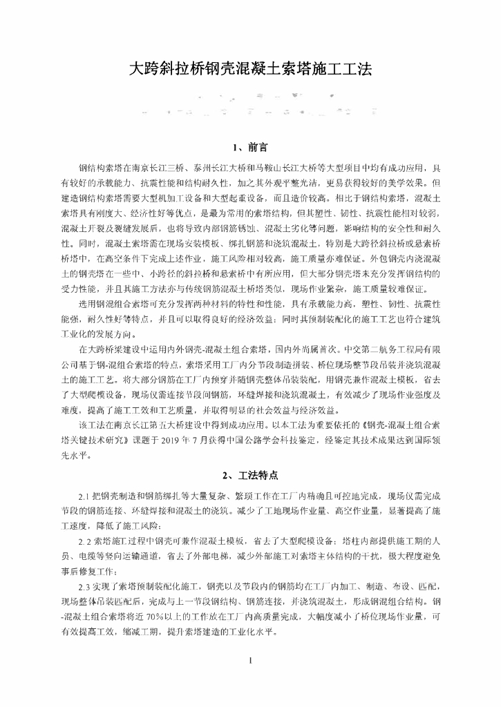 大跨斜拉桥钢壳混凝土索塔施工工法20页.pdf