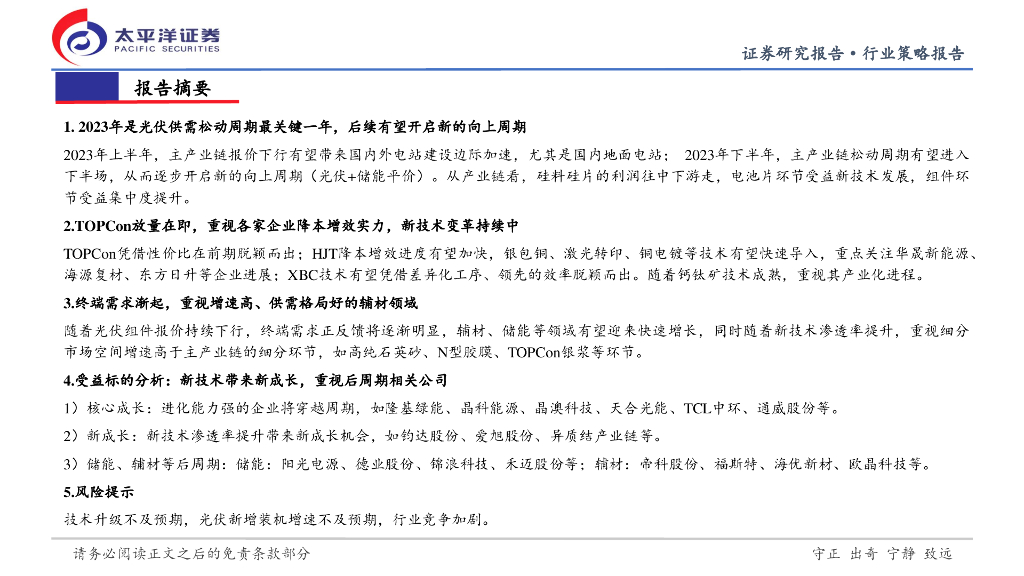 太平洋证券:光伏行业2023年中期策略会:松动中开启新周期,新技术带来新成长.pdf