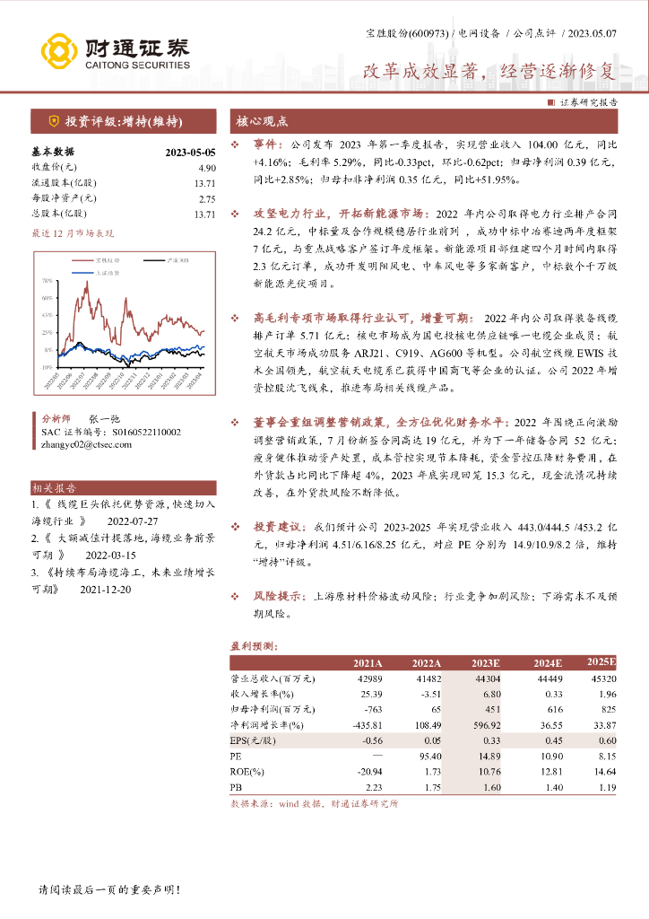 财通证券:宝胜股份(600973)-改革成效显著,经营逐渐修复.pdf