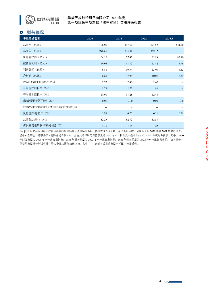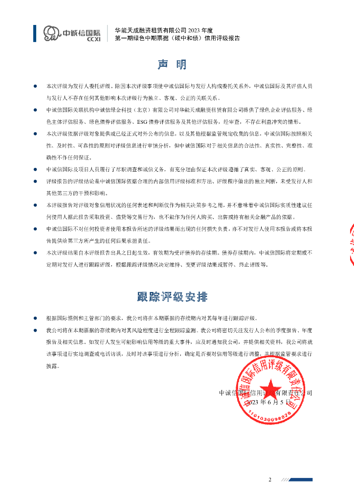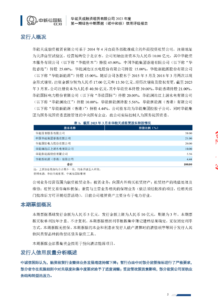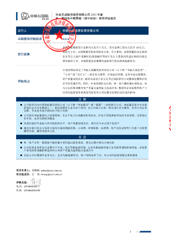 中诚信:华能天成融资租赁有限公司2023年度第一期绿色中期票据(碳中和债)信用评级报告.pdf