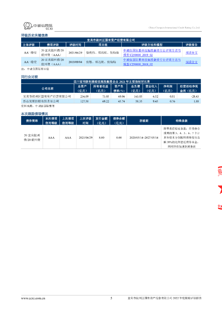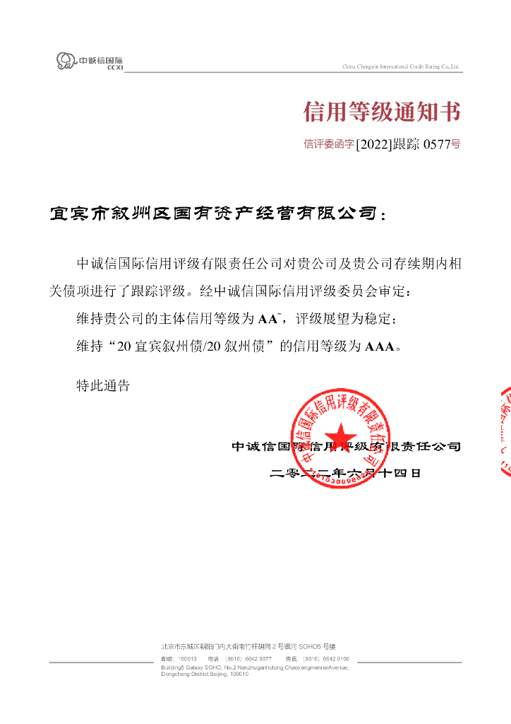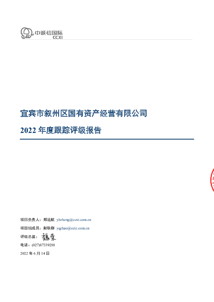 中诚信:宜宾市叙州区国有资产经营有限公司2022年度跟踪评级报告.pdf