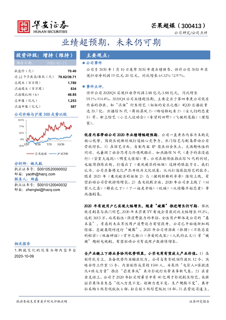 华安证券:芒果超媒(300413)-业绩超预期,未来仍可期.pdf