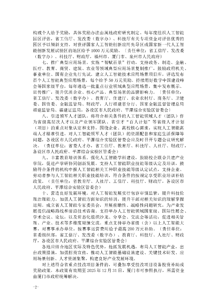 福建省促进人工智能产业发展十条措施.doc