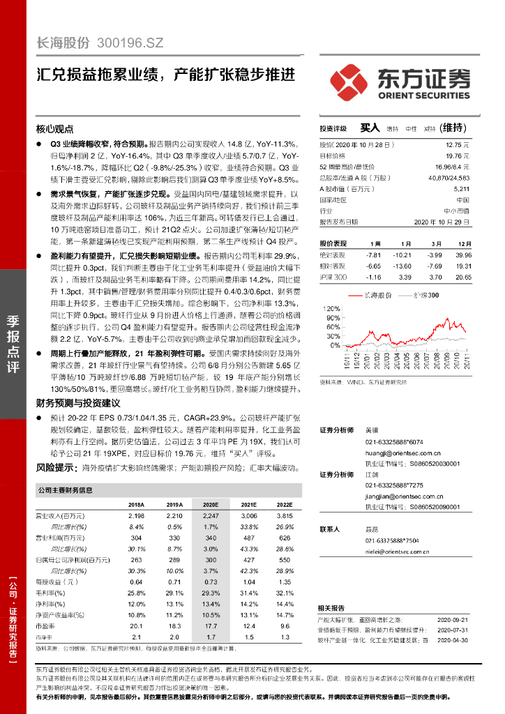 东方证券:长海股份(300196)-汇兑损益拖累业绩,产能扩张稳步推进.pdf