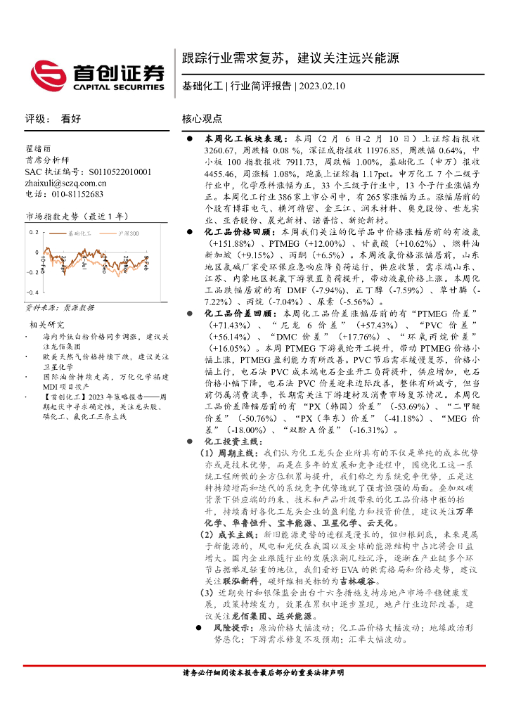 首创证券:基础化工行业简评报告:跟踪行业需求复苏,建议关注远兴能源.pdf