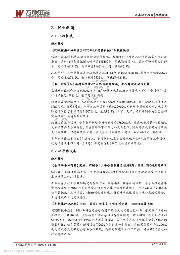万联证券:机械设备行业周观点:5月挖掘机销量继续高增长,全年持续高景气.pdf