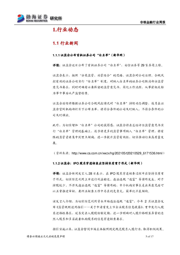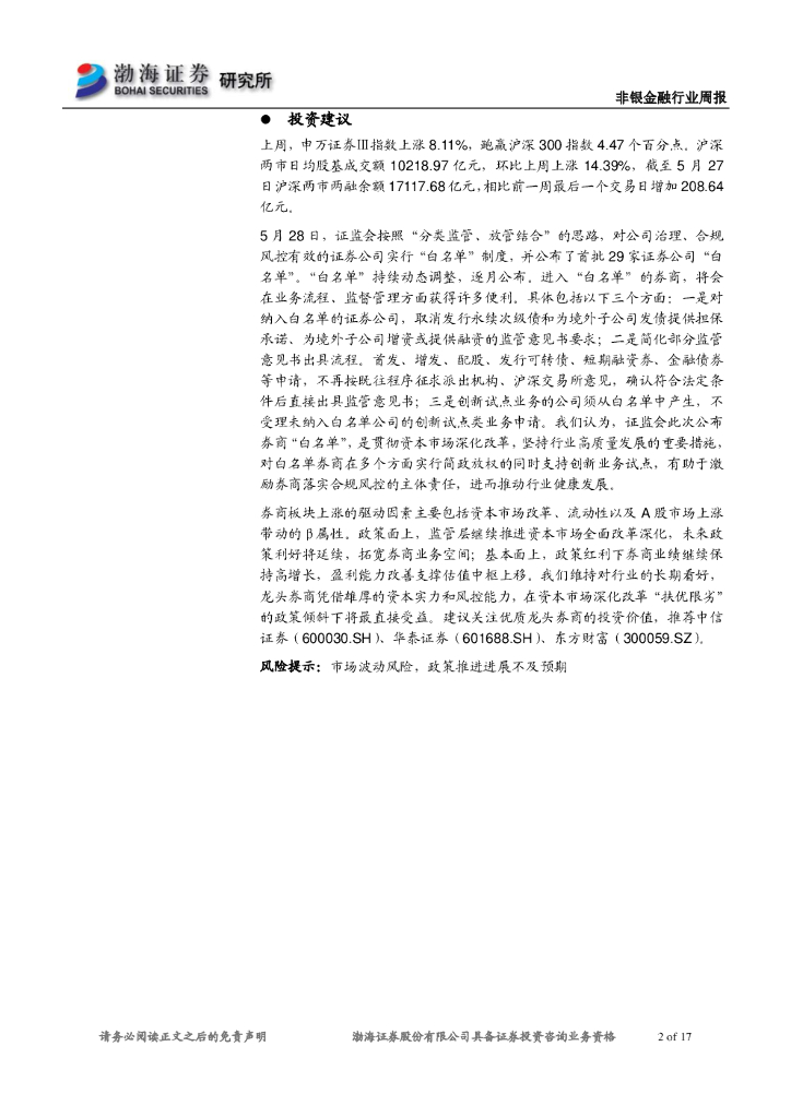 渤海证券:非银金融行业周报:证监会公布券商“白名单”,助推行业高质量发展.pdf