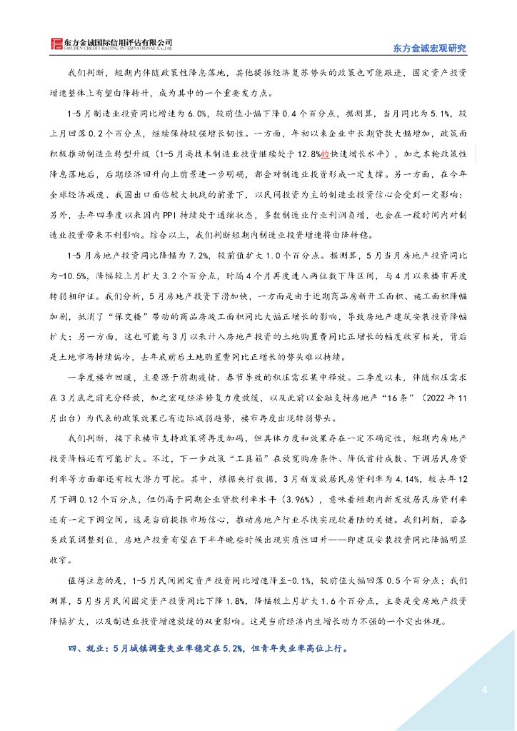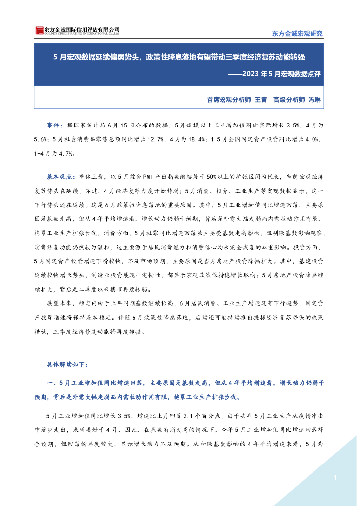 东方金诚:5月宏观数据延续偏弱势头,政策性降息落地有望带动三季度经济复苏动能转(2023年5月宏观数据点评).pdf