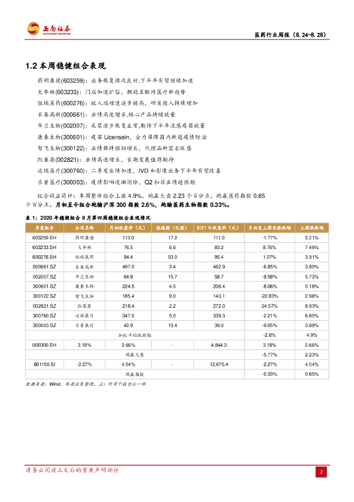 西南证券:医药行业周报:寻找业绩确定性,延续看好药店和创新药械产业链.pdf