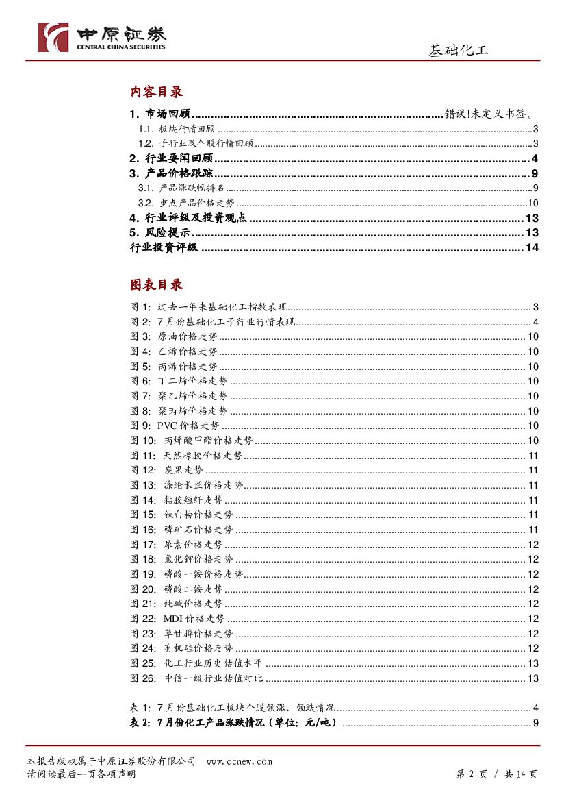 中原证券:基础化工行业月报:化工产品价格整体回暖,磷化工价格涨幅居前.pdf