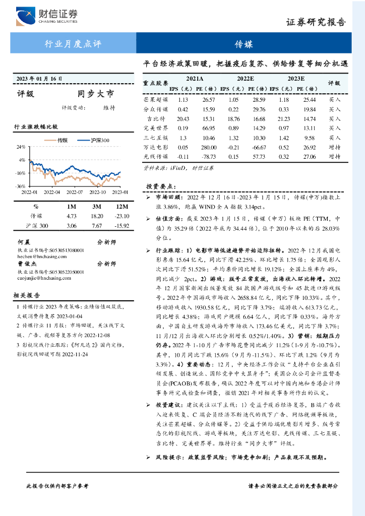 财信证券:传媒行业月度点评:平台经济政策回暖,把握疫后复苏、供给修复等细分机遇.pdf