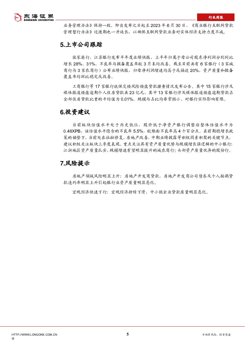 东海证券:银行行业周报:多家中小银行中报预喜,互联网贷款过渡期延长.pdf