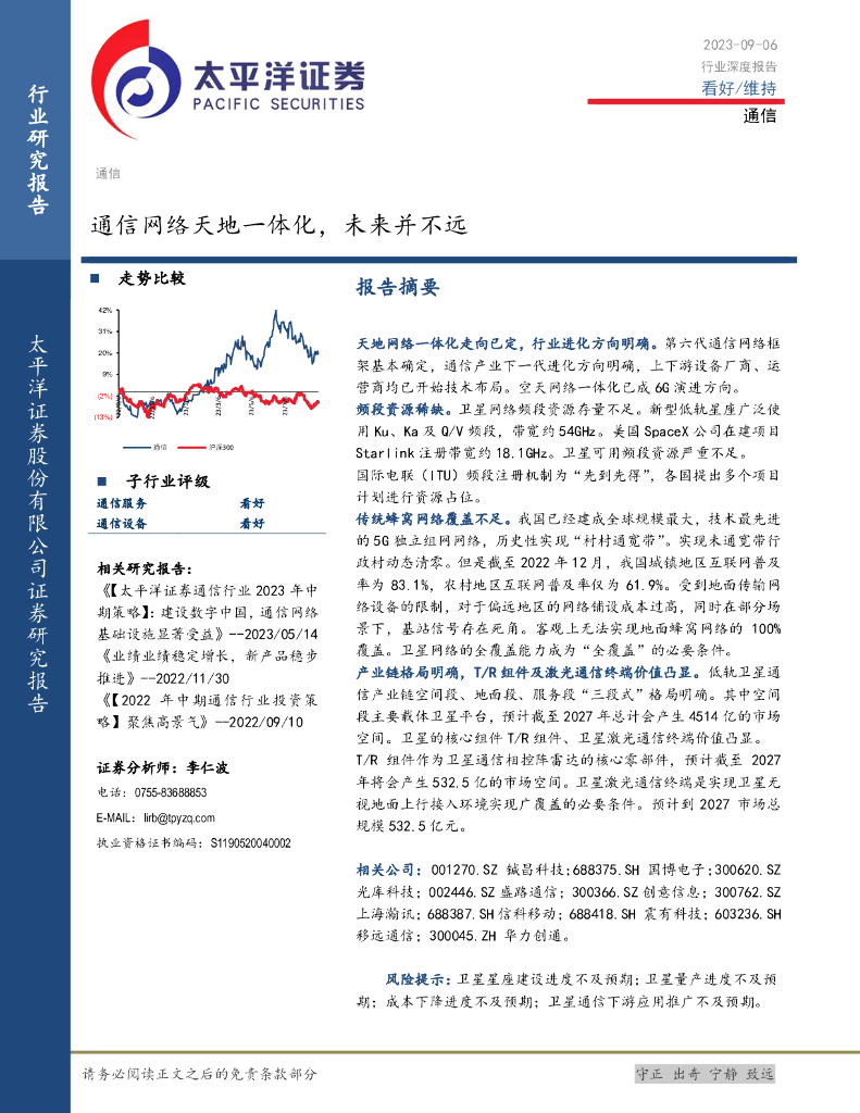 太平洋证券:通信行业深度报告:通信网络天地一体化,未来并不远.pdf