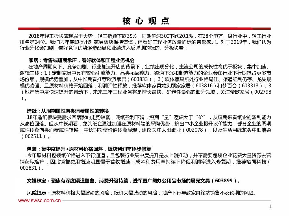 西南证券:轻工行业2019年投资策略:聚焦分化、拥抱变化.pdf