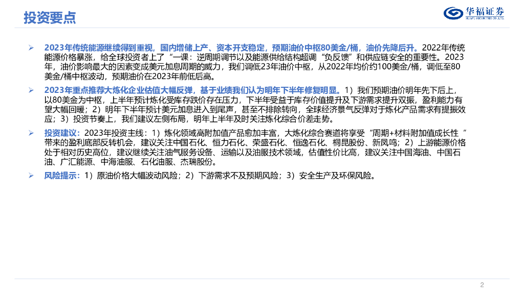 华福证券:2023年度石油石化行业策略报告:大炼化景气向上,上游估值性价比仍存.pdf