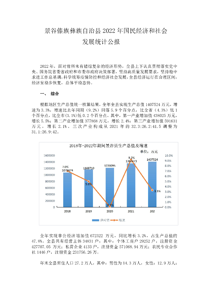 景谷傣族彝族自治县2022年国民经济和社会发展统计公报.pdf