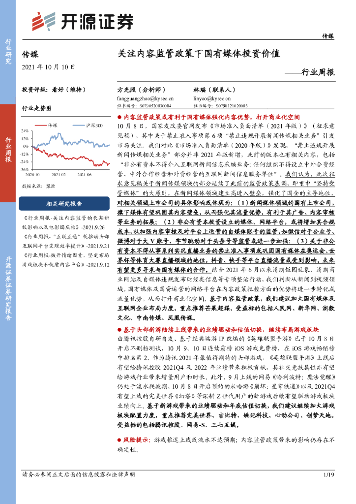 开源证券:传媒行业周报:关注内容监管政策下国有媒体投资价值.pdf