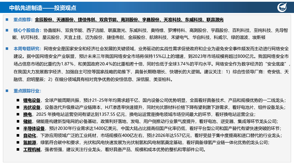 中航证券:先进制造行业周报:网络安全重要性凸显,自主可控背景下有望保持稳步增长.pdf