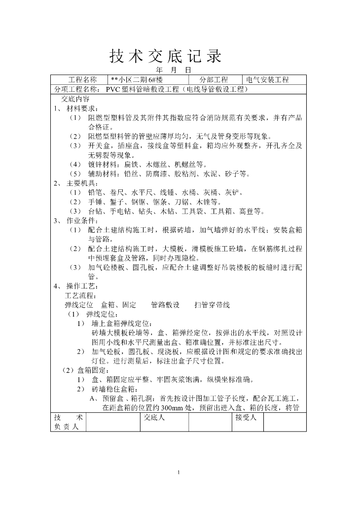 电气施工技术交底样本(供新手参考).doc