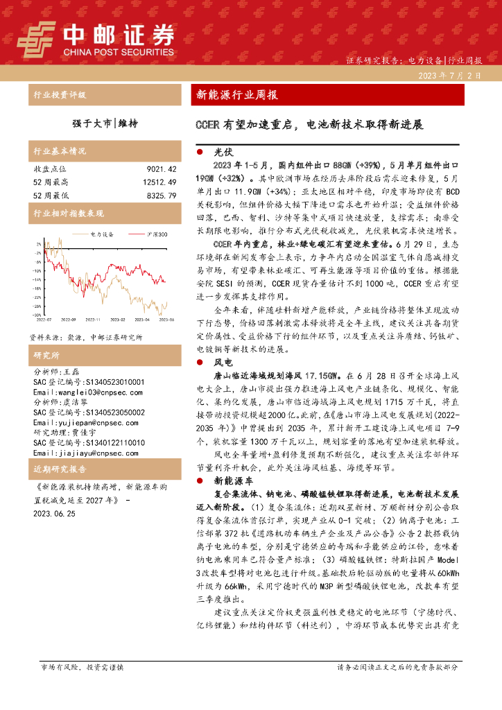 中邮证券:新能源行业周报:CCER有望加速重启,电池新技术取得新进展.pdf