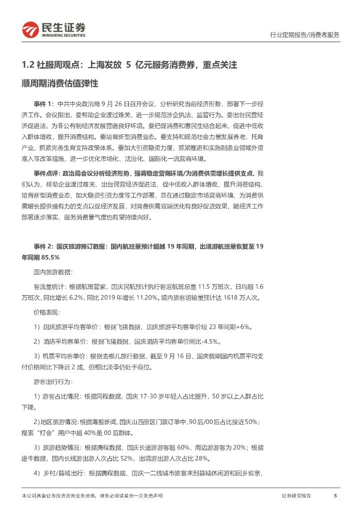 民生证券:社服周观点:上海发放5亿元服务消费券,重点关注顺周期消费估值弹性.pdf
