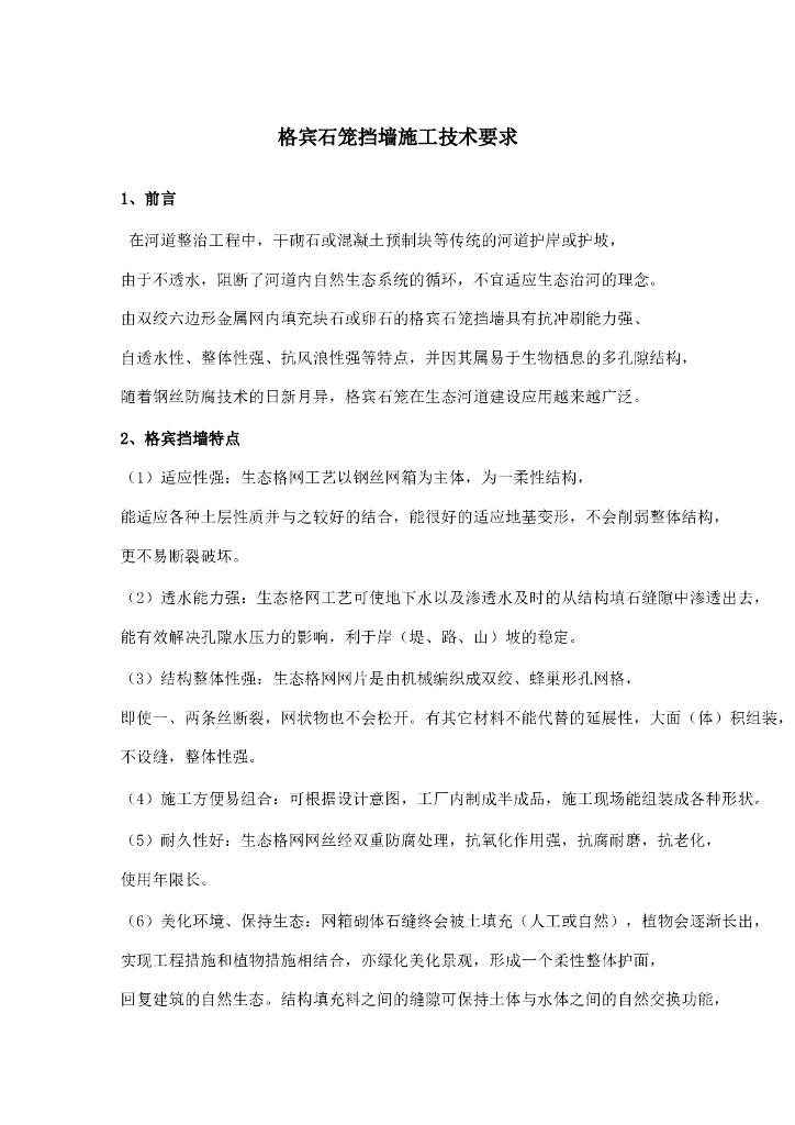 河道整治格宾石笼挡墙护坡施工方案.doc