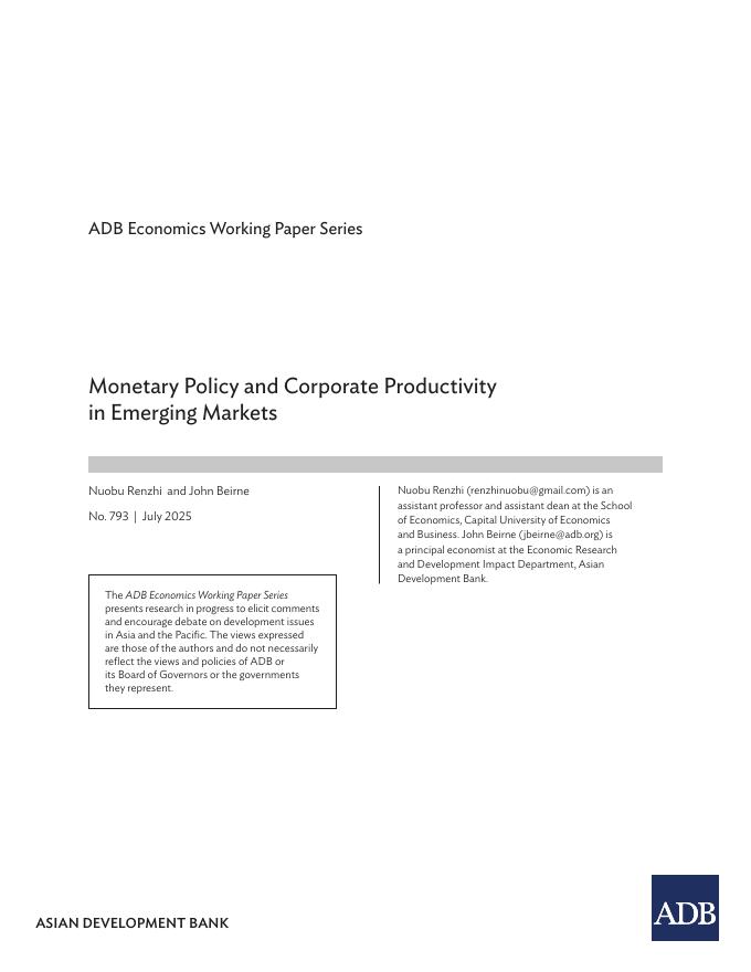 ADB亚洲开发银行:新兴市场的货币政策与企业生产力(英文版).pdf