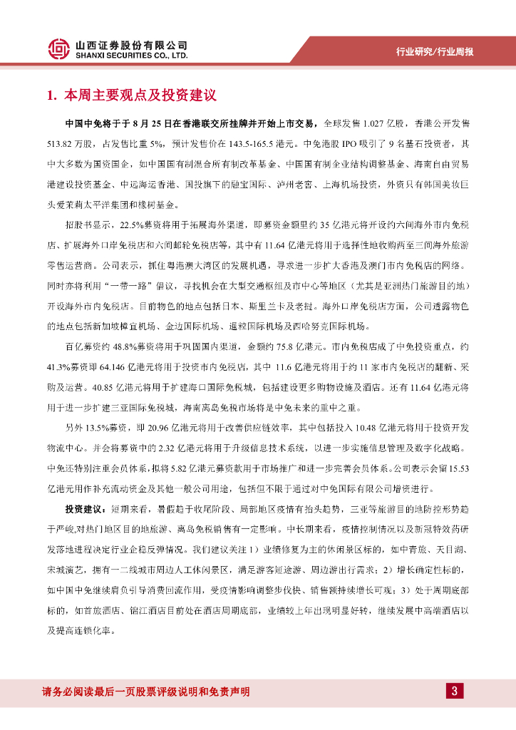 山西证券:消费者服务行业周报:中国中免将于于8月25日在香港联交所挂牌并开始上市交易.pdf