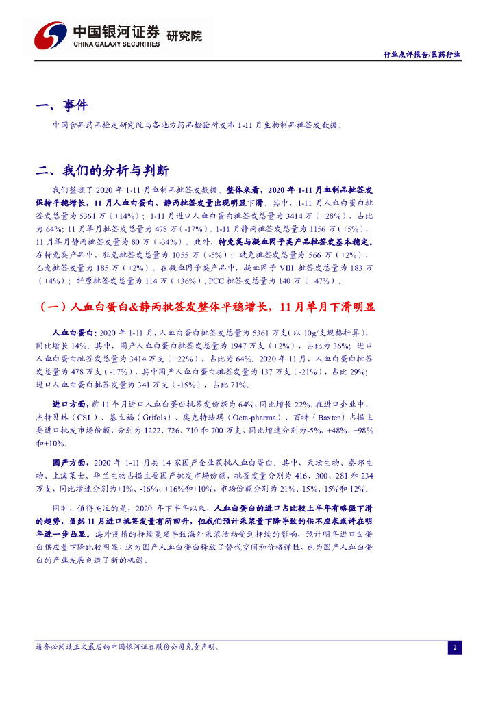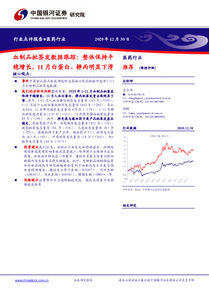 中国银河:血制品批签发数据跟踪:整体保持平稳增长,11月白蛋白、静丙明显下滑.pdf