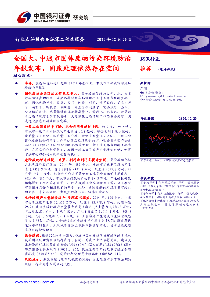 中国银河:环保行业:全国大、中城市固体废物污染环境防治年报发布,固废处理依然存在空间.pdf