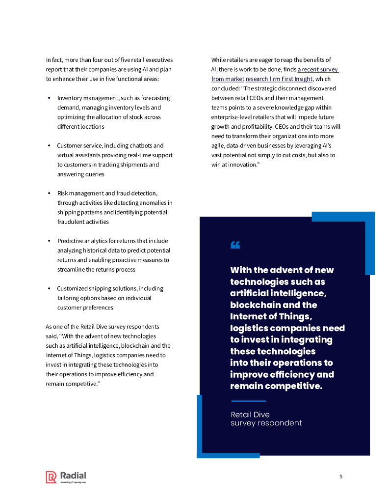 Radial&Retail Dive:2024年零售商关键议题研究:AI应用、应对物流挑战及保障未来运营的其他核心领域(英文版).pdf