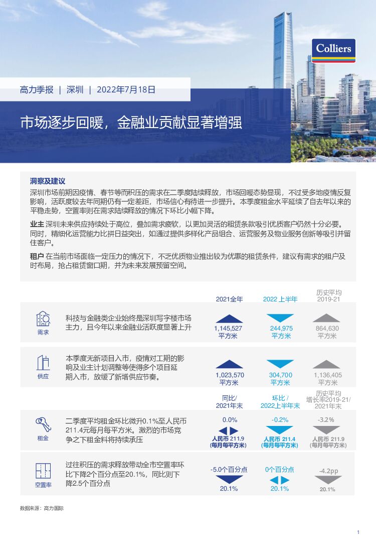 高力国际:2022年第二季度深圳写字楼市场回顾与展望.pdf