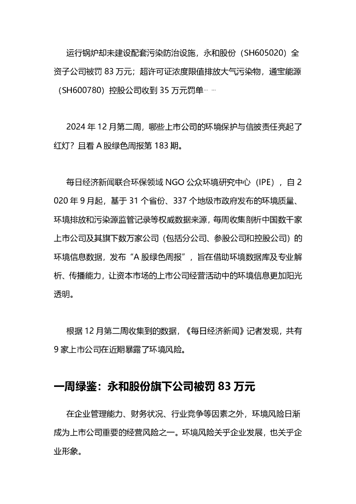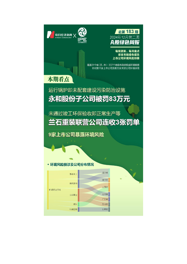 A股绿色周报(2024年12月第二周 总第183期):9家上市公司暴露环境风险 兰石重装一联营公司连收3张罚单.pdf