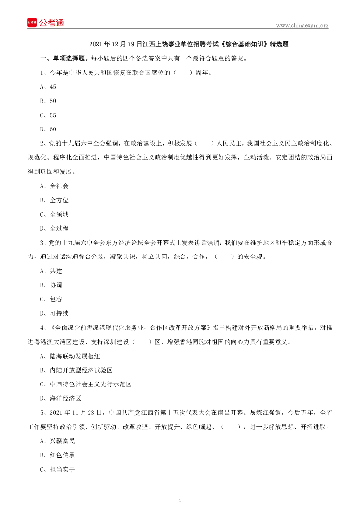 2021年12月19日江西上饶事业单位招聘考试《综合基础知识》精选题.pdf