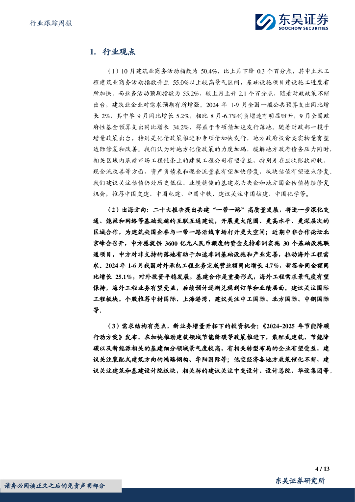 东吴证券:建筑装饰行业跟踪周报:稳增长政策下需求预期改善,继续推荐低估值建筑央企和化债方向.pdf