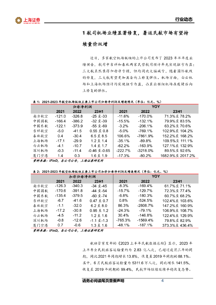 上海证券:航空机场板块2023年半年度业绩预告&6月数据点评:航司机场业绩显著修复,暑运民航市场有望持续量价双增.pdf