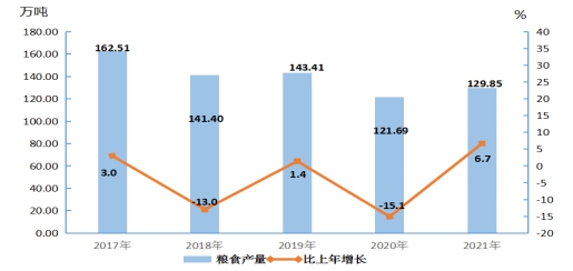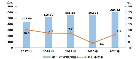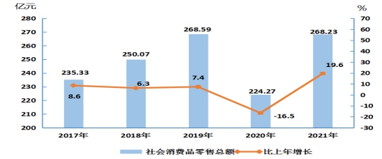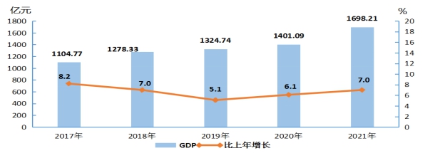 图1 2017年-2021年地区生产总值及其增长速度