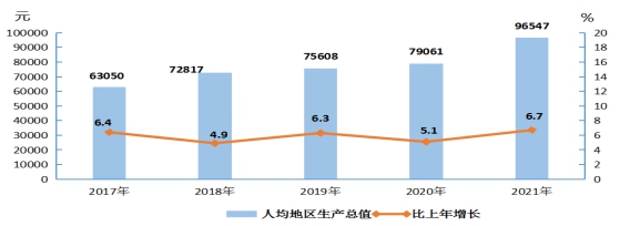 图3 2017年-2021年人均地区生产总值及其增长速度