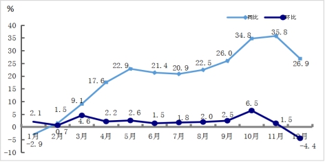图4 2021年工业生产者出厂价格月度涨跌幅度