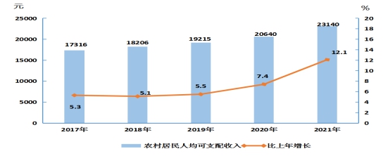 图13 2017年-2021年农村居民人均可支配收入及其增长速度